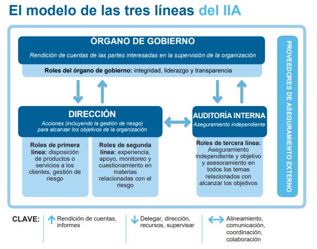 El modelo de las tres líneas ayuda a las organizaciones a identificar estructuras y procesos que mejor ayuden a alcanzar los objetivos y faciliten un gobierno sólido y una gestión de riesgos. El modelo se aplica a todas las