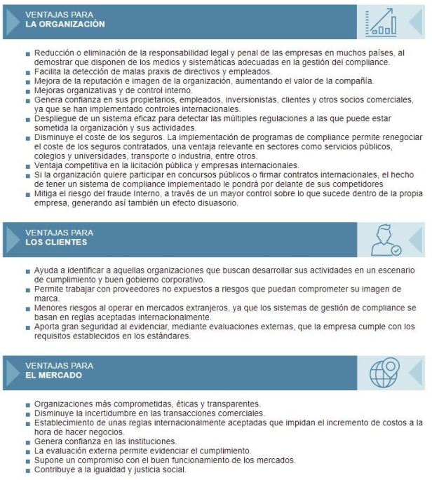 Fuente: World Compliance Association https://www.worldcomplianceassociation.com/beneficios-del-compliance.php.