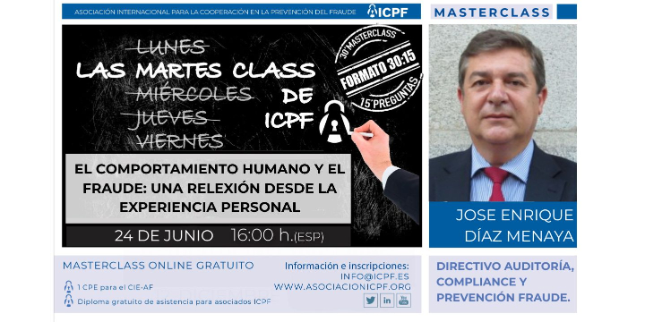 El próximo martes 24 de junio a las 16:00 h (España), la Asociación Internacional para la cooperación y prevención del Fraude (ICPF) organiza una nueva sesión de sus ya reconocidas MartesClass, esta vez con un enfoque tan necesario como profundo: la relación entre el comportamiento humano y el fraude.
