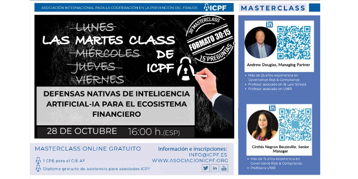 Con el propósito de promover una cultura de integridad apoyada en la innovación, la Asociación ICPF presentará el próximo martes 28 de octubre de 2025, de 16:00 a 16:45 (hora de España), una nueva sesión de sus reconocidas MartesClass, titulada “El poder de la Analítica en la lucha contra el fraude”.