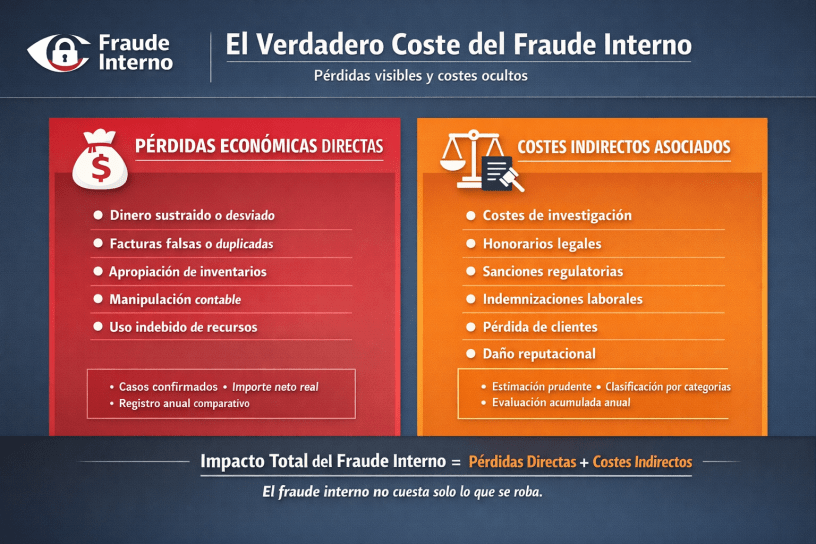Son los importes concretos y demostrables que la organización ha perdido como consecuencia de un acto fraudulento interno.